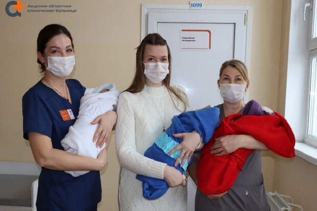 В Амурском областном перинатальном центре в Благовещенске успешно прошли роды у 32-летней Марины Коншаровой, впервые за три года в учреждении родилась тройня.
