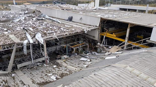 Металлическая крыша была сорвана, несущие балки погнуты, производственное оборудование и цеха затоплены, сообщает пресс-служба компании.