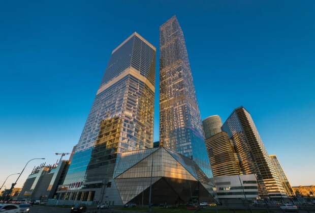 Комплекс небоскребов "ОКО" (главная башня "ОКО" – самая высокая на фото). Фото: https://cdn.pronovostroy.ru/object/2015-02-11/54db360c93c0a54b0f8b45a0/images/5a439a416153c.jpg
