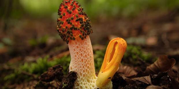 Гриб примечателен ярко-красным цветом и специфическим запахом, напоминающим гниющее мясо, который привлекает насекомых-опылителей.